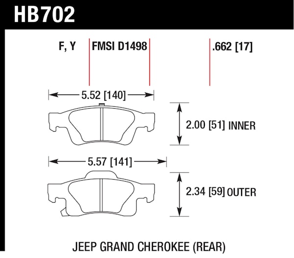 HPS Disc Brake Pad; 0.662 Thickness;High Performance Street disc brake pads are legendary for increasing stopping power on street-legal vehicles. Increasing the performance of your vehicles braking system is easy when you choose Hawk Performances HPS braking compound. The High Performance Street compound offers a higher coefficient of friction over stock brake pads and can provide you 20 to 40 percent more stopping power and higher resistance to brake fade than most standard replacement pads. Less fade means you will have better pedal feel and more consistent performance in a durable brake pad that generates less brake dust.HPS Performance Street CompoundIncreased Stopping PowerHigh Friction/Torque Hot Or ColdExtended Pad LifeLow DustVirtually Noise-FreeInformation:HPS Performance Street Compound; Increased Stopping Power; High Friction/Torque Hot Or Cold; Extended Pad Life; Low Dust; Virtually Noise-FreeApplication Summary: